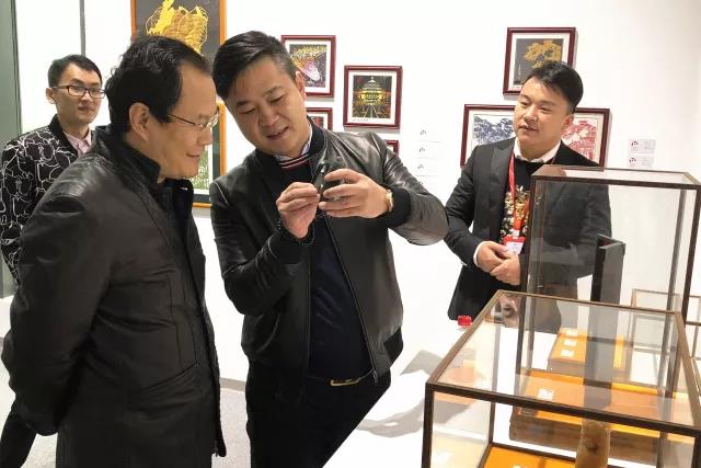 在張航董事長的帶領(lǐng)下,侯學(xué)軍董事長參觀了陳列于泓藝九洲國際文化藝術(shù)中心的書畫、油畫、角雕、微雕、瓷器等精美藝術(shù)品。這些精美藝術(shù)品深深觸動了侯學(xué)軍董事長,其中,著名微雕大師潘啟慧老師的一系列精美微雕作品更是讓他大加贊賞,認(rèn)為其精美至極。