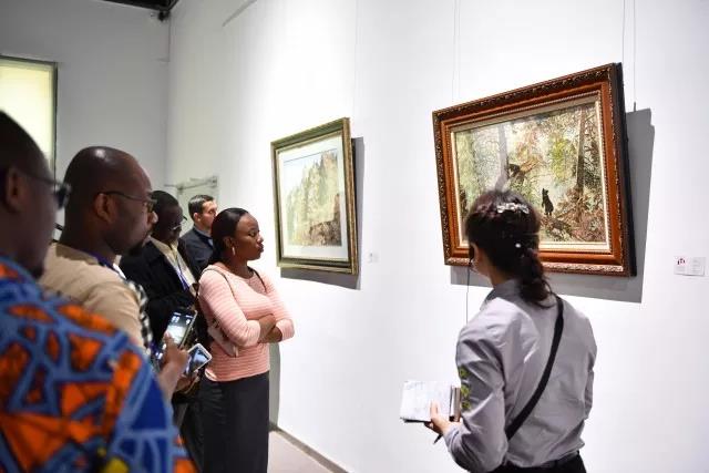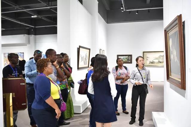 泓藝九洲國(guó)際文化藝術(shù)中心董事長(zhǎng)張航向來(lái)訪(fǎng)的一帶一路沿線(xiàn)發(fā)展中國(guó)家官員們?cè)敿?xì)介紹了泓藝九洲的基本發(fā)展情況。并一同參觀(guān)了正在泓藝九洲國(guó)際文化藝術(shù)中心展出的各類(lèi)國(guó)內(nèi)外藝術(shù)品及民間工藝品。
