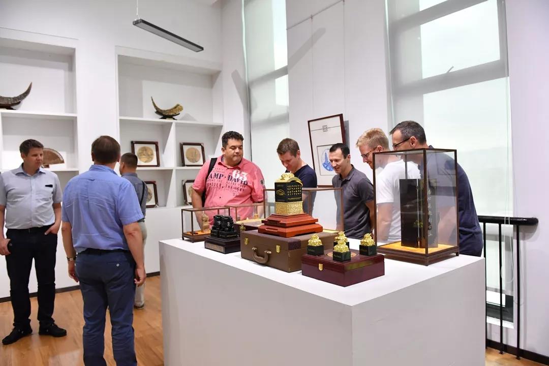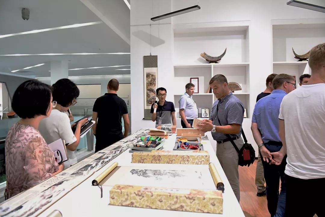 隨后,代表團一行參觀了泓藝九洲一、二樓展廳,仔細觀看欣賞了名家書畫、非遺擺件、瓷器及其他文創(chuàng)品,眾多文化藝術品令代表團一行贊嘆不已。孟德教授表示泓藝九洲以國家“一帶一路”重要戰(zhàn)略為指導,依托重慶區(qū)位優(yōu)勢、人文優(yōu)勢及自貿區(qū)政策優(yōu)勢,為促進中外文化藝術交流作出了積極貢獻。未來也希望泓藝九洲能在中瑞文化藝術交流上起到重要作用。
