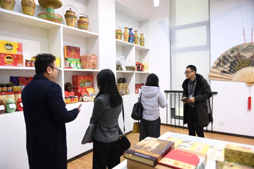 泓藝九洲副總裁周鑫陪同Chanida Atipanya董事長一行參觀了展廳展出的非物質(zhì)文化遺產(chǎn)、文化創(chuàng)意產(chǎn)品、進(jìn)口油畫藝術(shù)品等。通過交流,Chanida Atipanya董事長對泓藝九洲的基本概況和企業(yè)發(fā)展有了初步了解,且對巴渝文化有了新的認(rèn)識與感受。