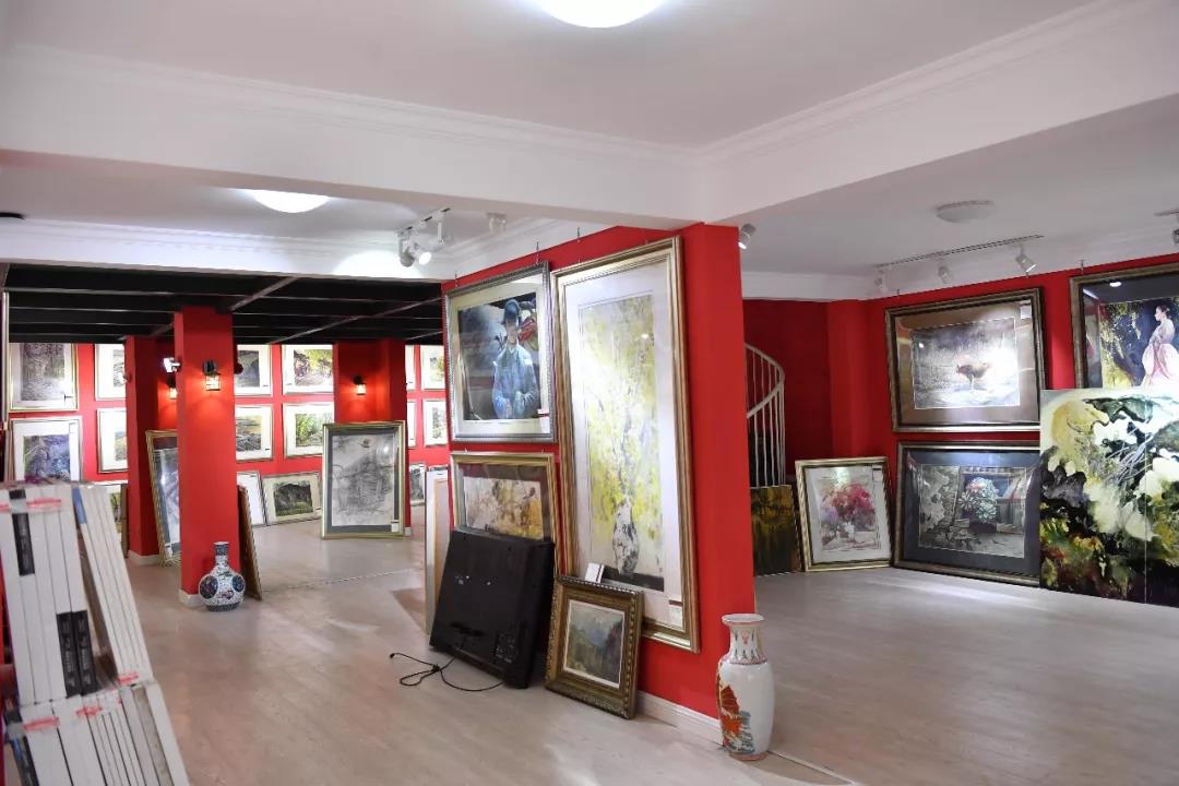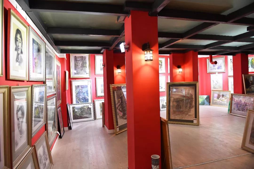 在綠蔭環(huán)繞的華宇天宮花城社區(qū)里,一棟不大的建筑中,竟坐落著一間美術(shù)館——許世虎美術(shù)館。若不是門前的牌匾題字,你根本想不到這樣的社區(qū)樓里竟然別有洞天。進(jìn)入門廳往下,竟還有兩層超大空間,水彩畫、水粉畫、油畫、漆畫、瓷器......數(shù)百件的藝術(shù)品匯聚于此,仿佛世外桃源,令人應(yīng)接不暇。