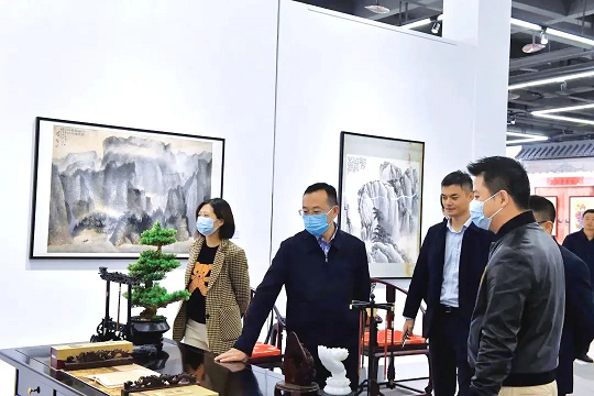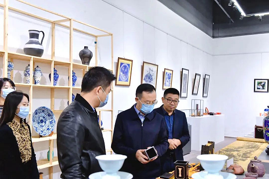 泓藝九洲董事長張航向領(lǐng)導(dǎo)一行詳細(xì)介紹了公司的發(fā)展歷程及企業(yè)未來規(guī)劃,并陪同領(lǐng)導(dǎo)觀看公司宣傳片,走覽了“非遺推廣中心”及“藝術(shù)品保稅展廳”。