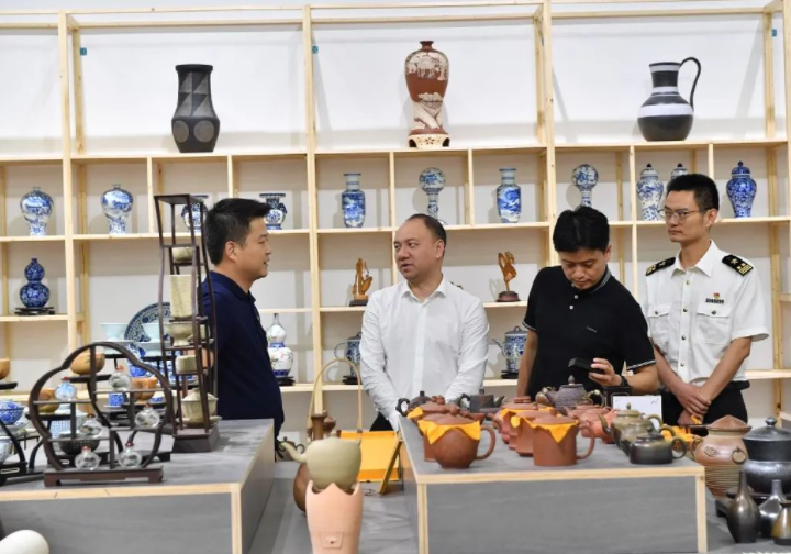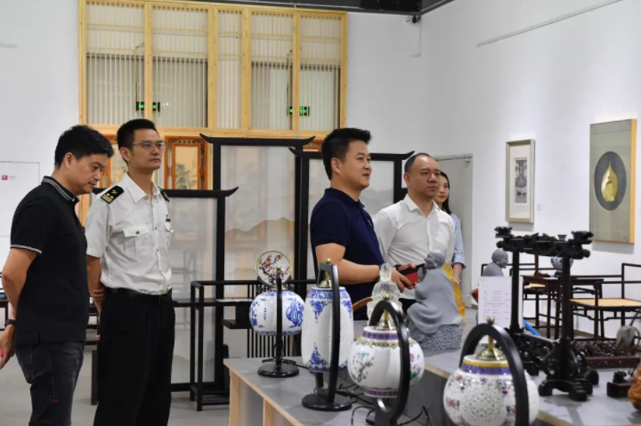 董事長(zhǎng)張航陪同領(lǐng)導(dǎo)一行走覽了“非遺推廣中心”及“二樓藝術(shù)品保稅展廳”,“非遺推廣中心”匯聚來自全國(guó)各地百余類國(guó)家級(jí)、市級(jí)、區(qū)級(jí)的精美工藝品,并采用了全新的場(chǎng)景式植入配套打造,向大眾呈現(xiàn)出中國(guó)非遺的獨(dú)特魅力。