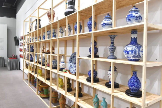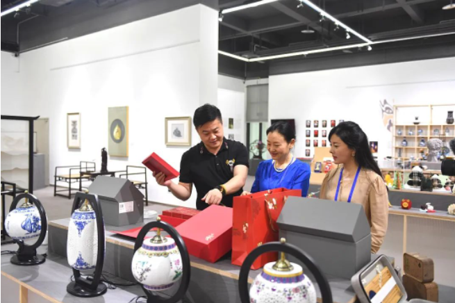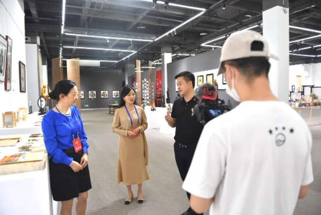 泓藝九洲董事長(zhǎng)張航向領(lǐng)導(dǎo)一行詳細(xì)介紹了來自重慶各區(qū)縣乃至全國(guó)各地的特色非遺工藝品,市政協(xié)委員一行對(duì)基地非遺推廣、工藝品展銷模式、國(guó)外藝術(shù)品保稅通關(guān)進(jìn)行了初步溝通了解。