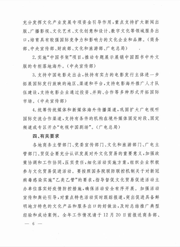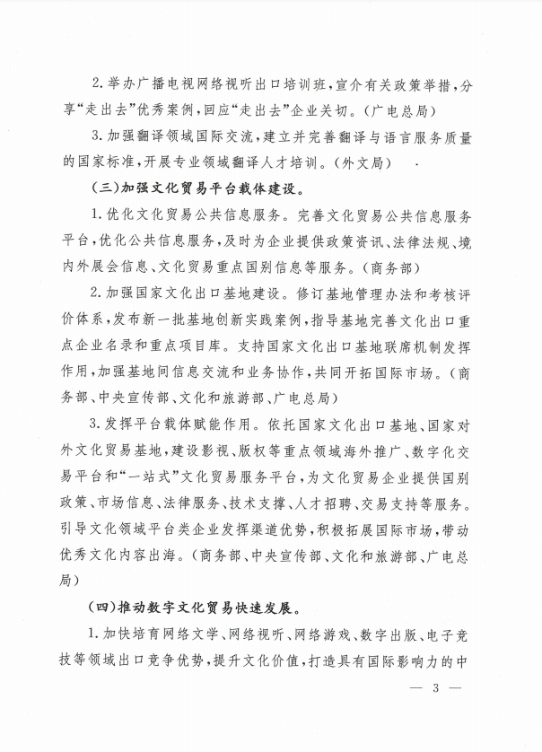 “千帆出海”行動(dòng)計(jì)劃由政府搭橋暢通合作渠道,通過(guò)展覽展示、對(duì)接洽談、線上平臺(tái)等方式宣傳推廣各地特色文化產(chǎn)品和服務(wù);舉辦具有較大覆蓋面、較強(qiáng)影響力的文化貿(mào)易促進(jìn)活動(dòng),為文化貿(mào)易企業(yè)拓展國(guó)際市場(chǎng)提供支持;鼓勵(lì)有關(guān)行業(yè)商協(xié)會(huì)、文化領(lǐng)域平臺(tái)企業(yè)積極參與舉辦各類活動(dòng),共同拓展文化企業(yè)出海新渠道。