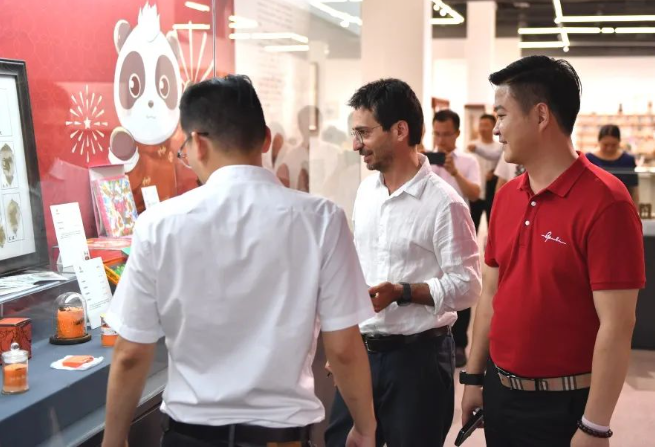泓藝九洲董事長張航、副總經(jīng)理林桐哲、陳懷玉陪同調(diào)研團(tuán)一行參觀了非遺推廣中心、中國好禮重慶發(fā)展中心及藝術(shù)品保稅展廳。