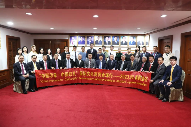 “中國印象·中國好禮”,推動“中國好禮”走向世界。由重慶(西永)對外文化貿(mào)易基地和中國貿(mào)促會商業(yè)行業(yè)委員會中國好禮產(chǎn)促中心主辦,中國貿(mào)促會商業(yè)行業(yè)委員會、重慶市商務委員會、重慶高新區(qū)黨工委宣傳部、重慶高新區(qū)改革發(fā)展局、泰國中華總商會指導,泓藝九洲和泰國華人青年商會承辦的“中國印象·中國好禮”國際文化商貿(mào)行活動于2023年8月16日-8月21日在泰國曼谷圓滿舉行。