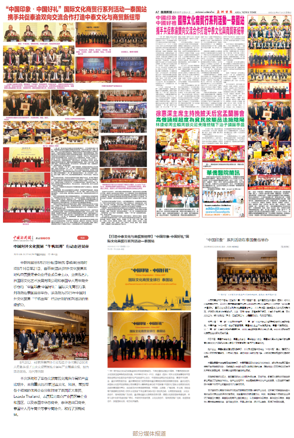 此次活動也引來當?shù)孛襟w廣泛關(guān)注,人民日報駐泰國分社、中國新聞社駐泰國分社、中國外文局亞太傳播中心曼谷分社、鳳凰衛(wèi)視泰國站點、泰國星暹日報、亞洲日報、中華日報、世界日報、京華中原、新中原報、海南三沙衛(wèi)視、泰國頭條新聞社、華人頭條泰國站點等十余家媒體均對活動進行了特別報道,對此次活動在文化交流、商貿(mào)促進等方面的推廣作用和成效給予了肯定。