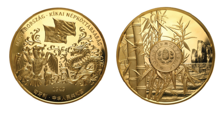 值得一提的是,為慶祝中國與匈牙利建交75周年,展覽特別展出了一枚象征兩國友誼長存的中匈建交 70 周年紀(jì)念幣。這枚紀(jì)念章設(shè)計精美,富含深厚的文化象征意義。在紀(jì)念章上,龍和圖魯鳥作為神話形象,分別代表了中國和匈牙利。龍是中國的傳統(tǒng)象征,代表著力量、智慧和好運,而圖魯鳥則在匈牙利的傳說和民間故事中占有重要地位,象征著勇氣和自由。這樣的設(shè)計不僅展示了兩國文化的交融,也體現(xiàn)了雙方對于深化友好關(guān)系的承諾。此外,竹子的元素在紀(jì)念章設(shè)計中也起到了特別的作用。在中國文化中,竹子因其堅韌不拔的生長力和優(yōu)雅的風(fēng)姿而備受推崇,象征著穩(wěn)固和長青。將竹子融入紀(jì)念章的設(shè)計中,寓意著中匈關(guān)系的穩(wěn)定性和持續(xù)發(fā)展的生機,寄望兩國關(guān)系如同竹子一樣,即使在逆境中也能保持堅韌,不斷向上生長,生動詮釋了中匈關(guān)系的蓬勃發(fā)展與深厚友誼。